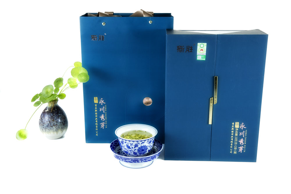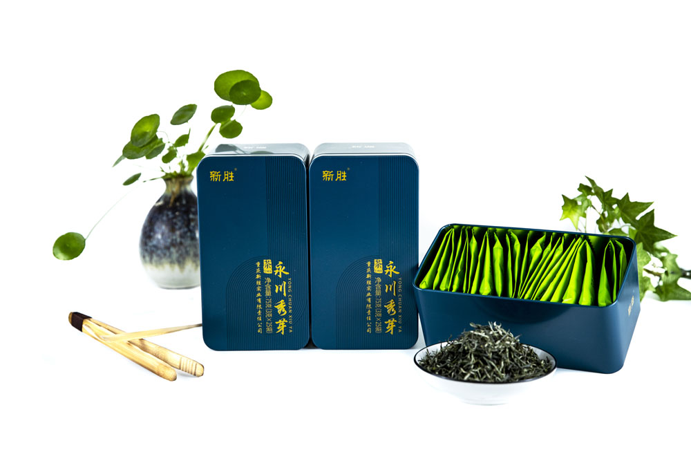新胜·永川秀芽具有外形紧直、细秀,色泽鲜润翠绿、披毫露锋,汤色浅绿明亮,嫰香馥郁高长,滋味鲜醇回甘,叶底嫩黄明亮的特点,其氨基酸含量较高,各种儿茶素的比值恰当,实属纯天然的绿色健康饮料佳品。荣获2021年永川区斗茶大会金奖、2023年——荣获重庆市第六届“巴渝味珍”杯斗茶大赛金奖、荣获“中茶杯”国际鼎承茶王赛金奖。2024年——在四川国际茶叶博览会上荣获“金奖”。