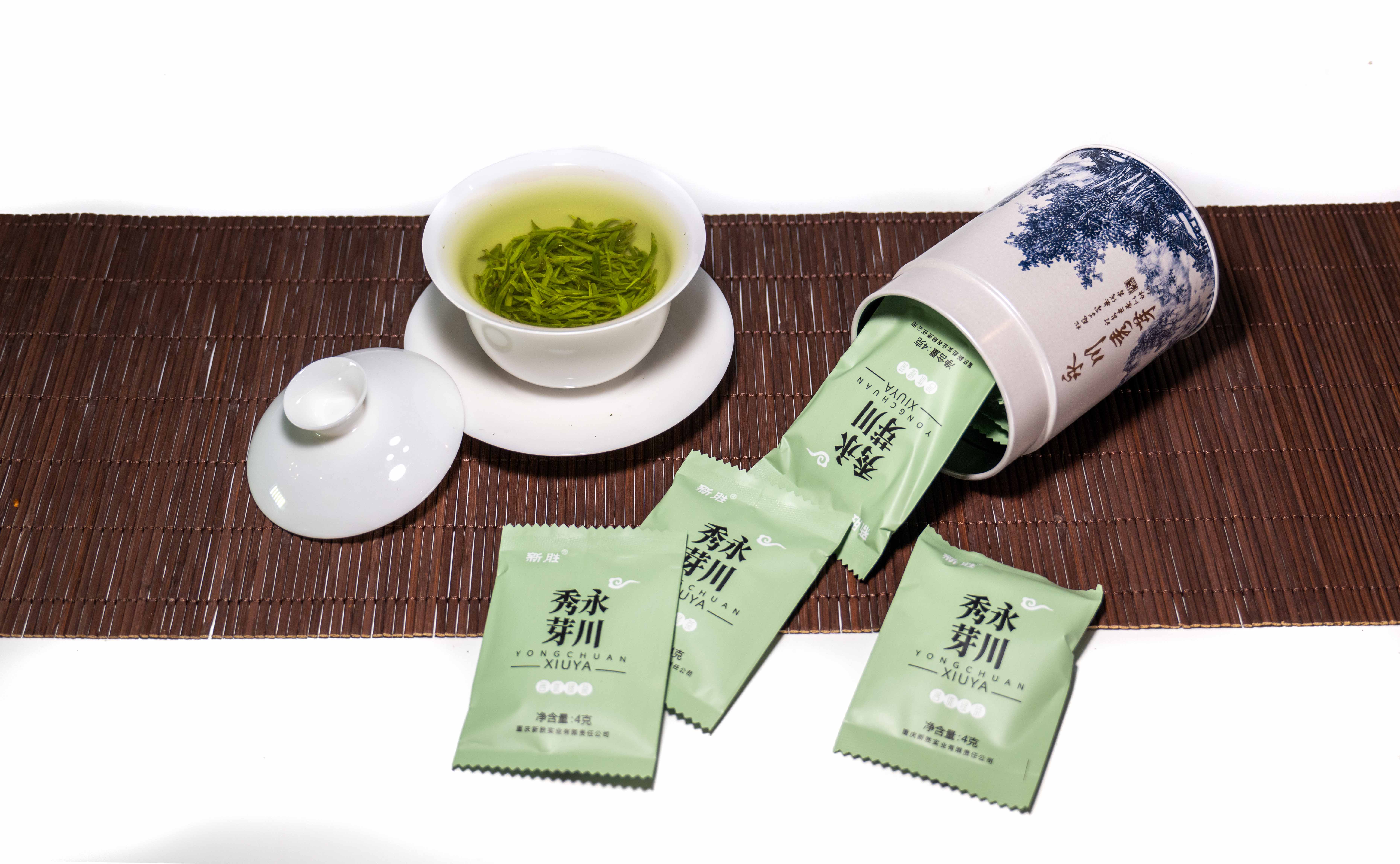 新胜·永川秀芽具有外形紧直、细秀,色泽鲜润翠绿、披毫露锋,汤色浅绿明亮,嫰香馥郁高长,滋味鲜醇回甘,叶底嫩黄明亮的特点,其氨基酸含量较高,各种儿茶素的比值恰当,实属纯天然的绿色健康饮料佳品。荣获2021年永川区斗茶大会金奖、2023年——荣获重庆市第六届“巴渝味珍”杯斗茶大赛金奖、荣获“中茶杯”国际鼎承茶王赛金奖。2024年——在四川国际茶叶博览会上荣获“金奖”。