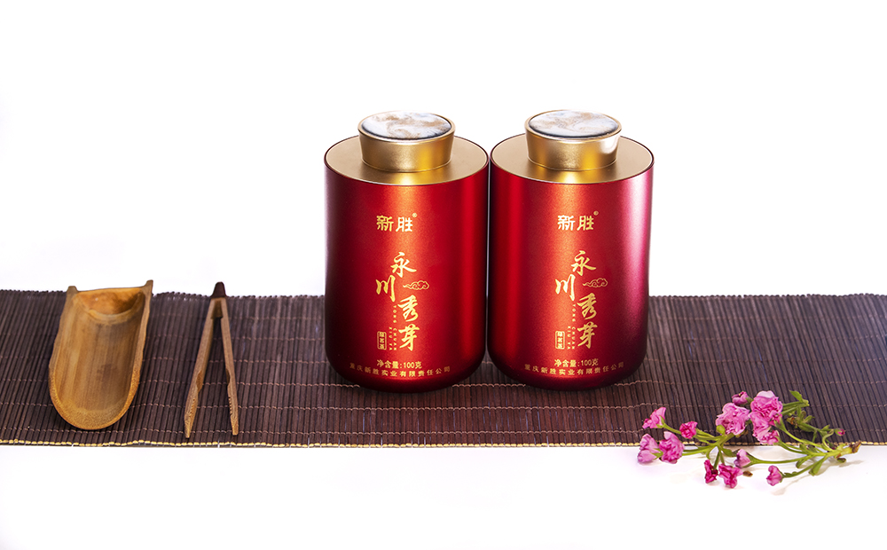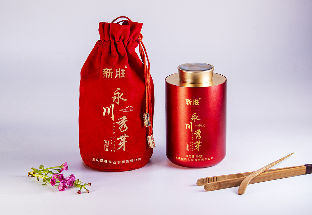 新胜·永川秀芽的原料基地坐落于气候温润、雨量充沛、常年云雾缭绕,具有亚热带气候特点的西山黄泥塘片区,茶树品种以“老川茶”,“福选九号”等多个优良品种为主,鲜叶采摘标准以一芽一叶初展为主,要求芽叶完整,新鲜,洁净。加工工艺分为捡剔、摊凉、杀青、揉捻、初烘、做形、复烘、提香、精选等多道工序。